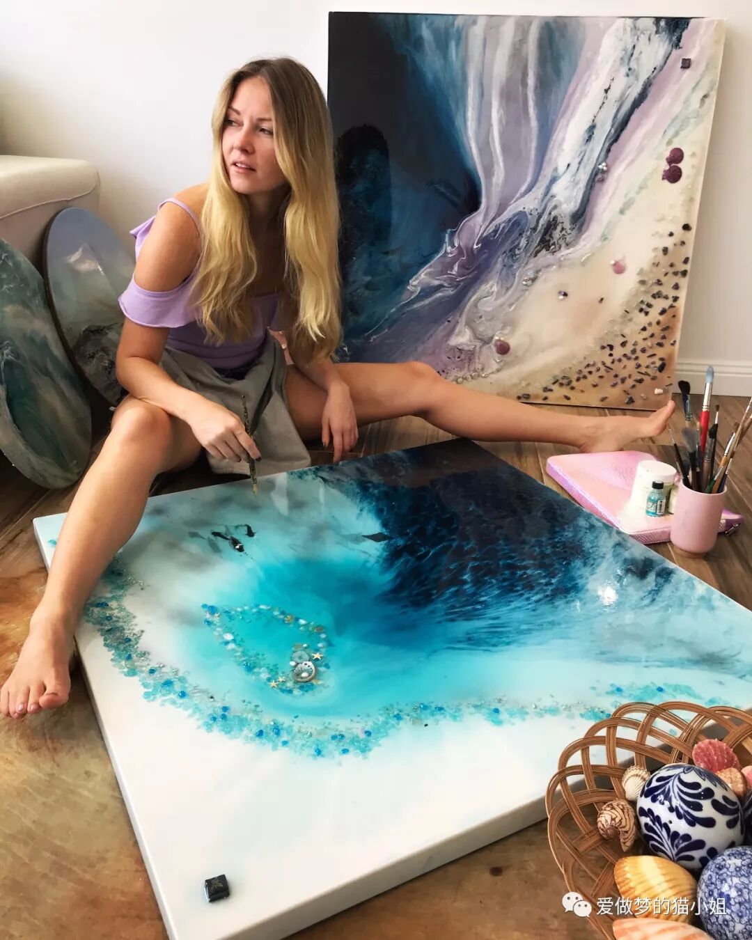 她说:“因为大海对我来说就如珍宝一般,而我们世间又把这些贝壳水晶当做珍宝,我就将他们融为一体,让每一个看到我的画的人都能感受到那份大自然的馈赠,都能够去感恩和珍惜这份生命的礼物。”
