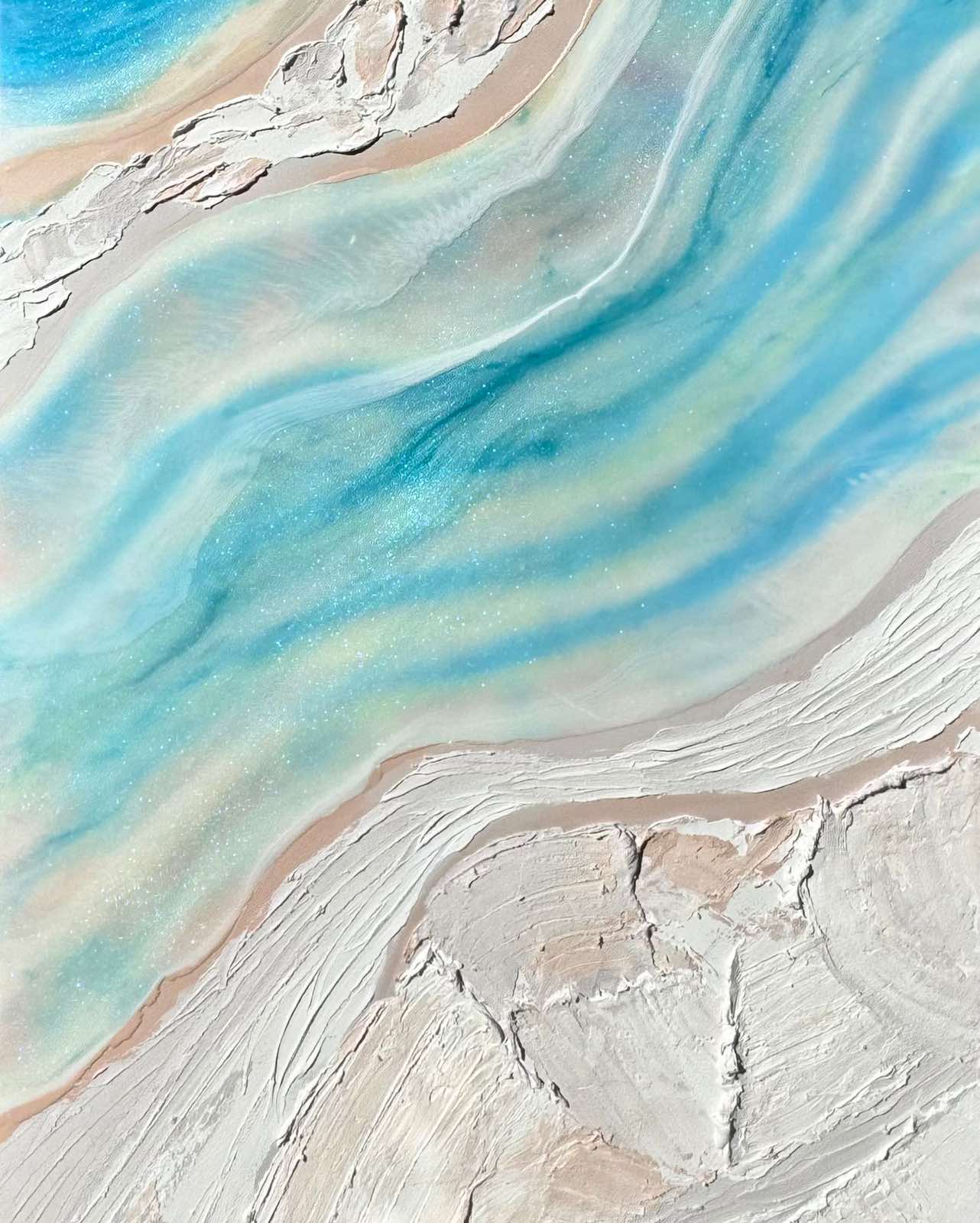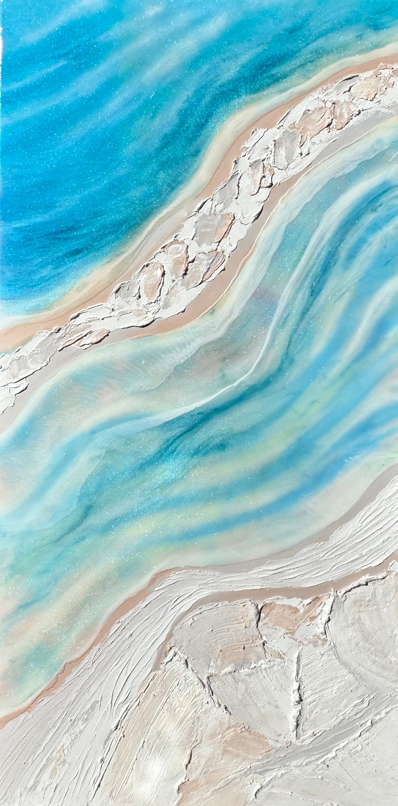 Immerse yourself in the serenity of the Australian coast with Antuanelle's bespoke beach and ocean art. She incorporates genuine sand and seashells sourced from around the world into her creations, allowing you to experience the calming ambiance of the ocean in your own home.