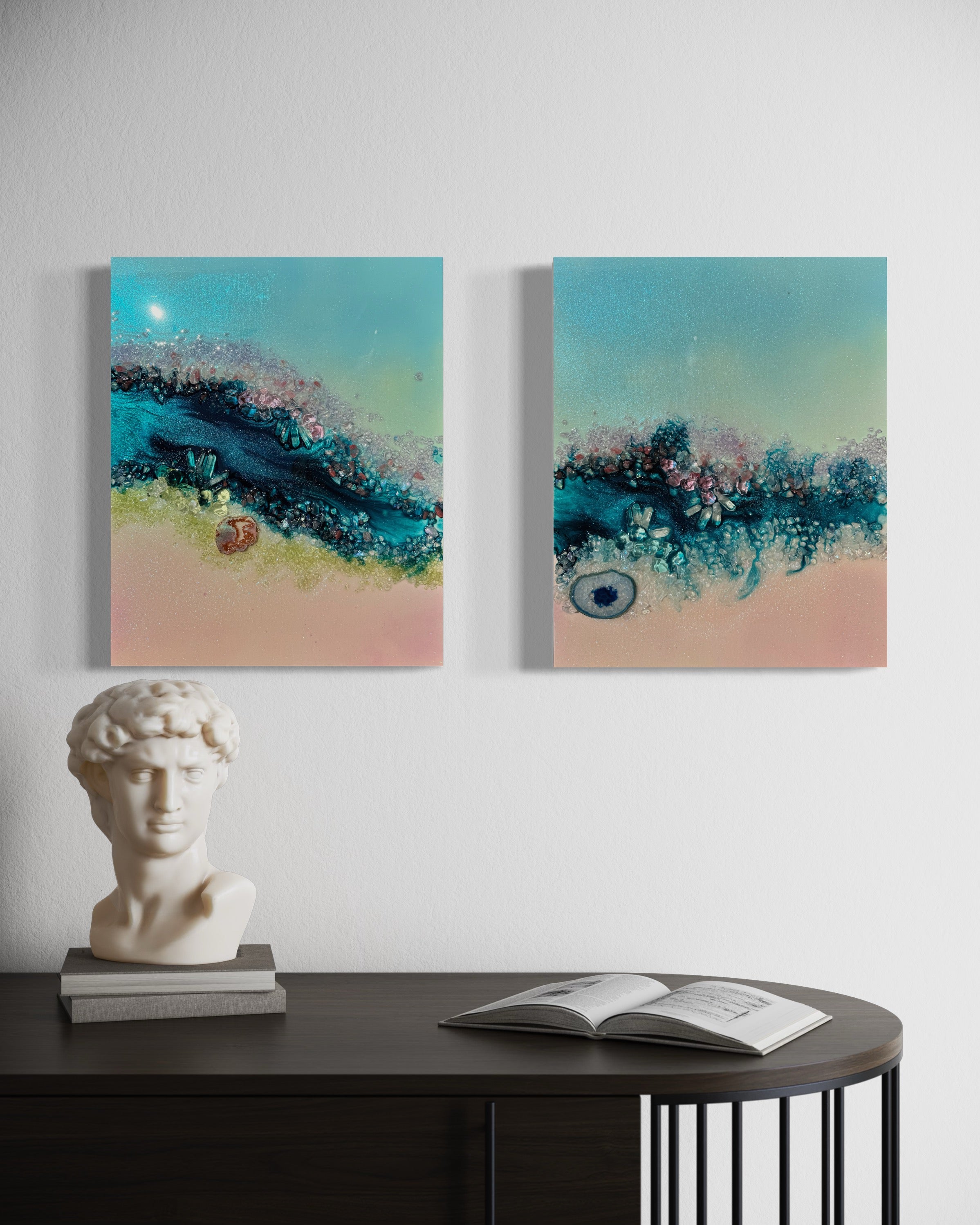 Immerse yourself in the serenity of the Australian coast with Antuanelle's bespoke beach and ocean art. She incorporates genuine sand and seashells sourced from around the world into her creations, allowing you to experience the calming ambiance of the ocean in your own home.