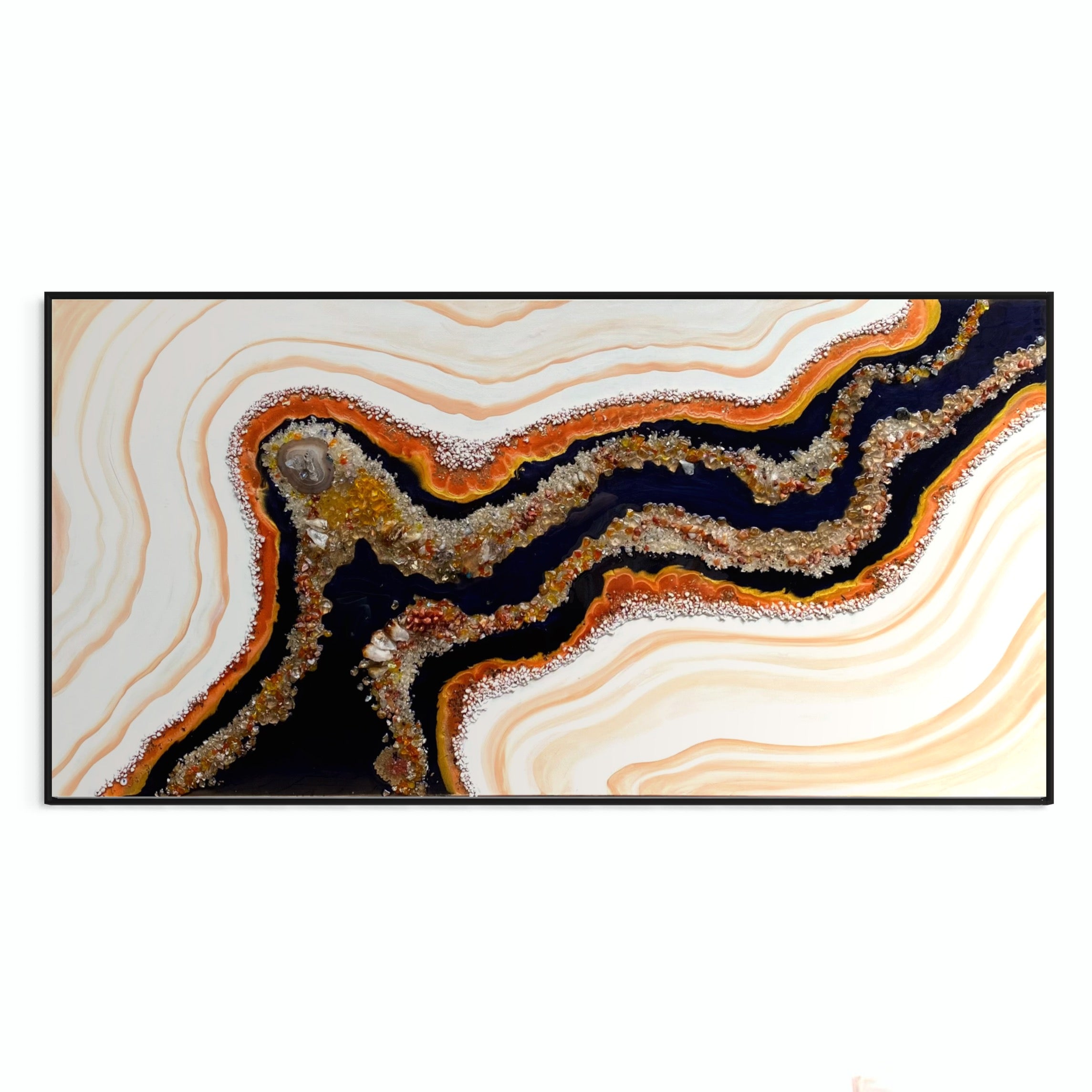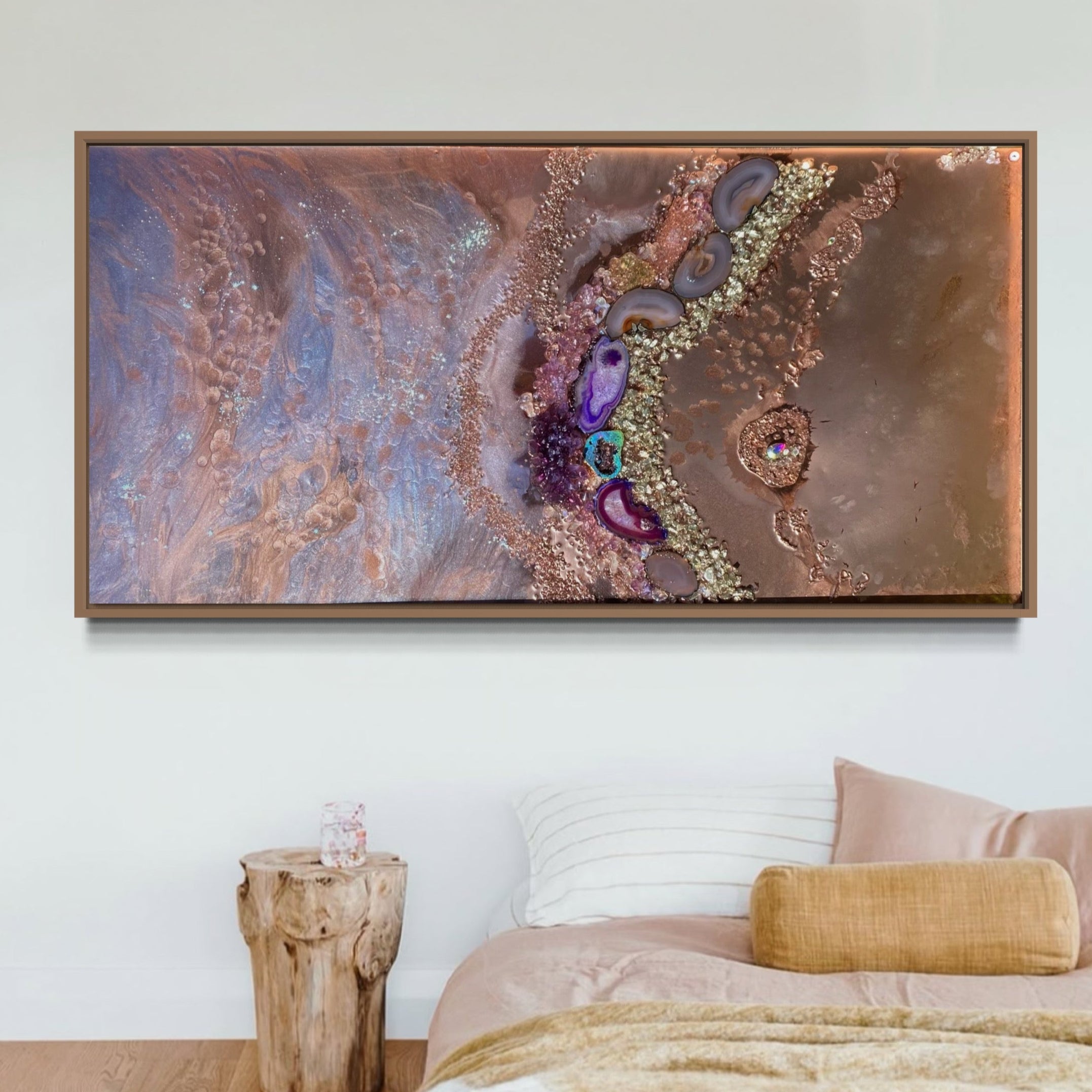 All our framed canvas original artworks and prints will have professional framer's hang wire pre-installed, arrive ready-to-hang. You just need to get nails or hanging hooks ready. If the artwork is made with natural crystals, minerals and gemstones and is above 9 kg in weight - it is recommended to hang using D-Rings only and avoid the string as its going to sag under the weight.