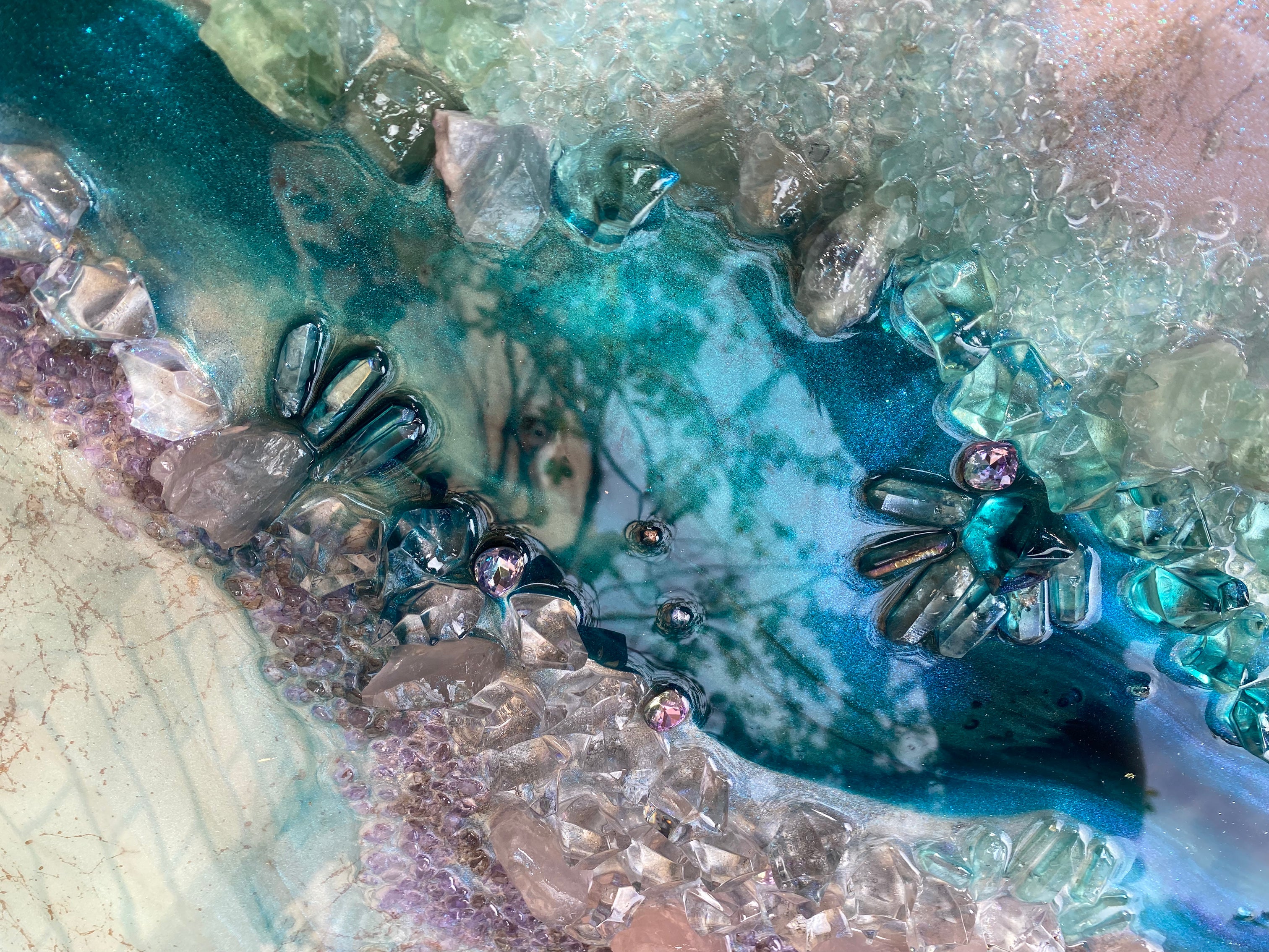 Crystal Art Made with Genuine Crystals - Agate geode, Quartz crystal, Amethyst geode , Amazonite , Aquamarine, Lapis Lazuli, Turquoise.