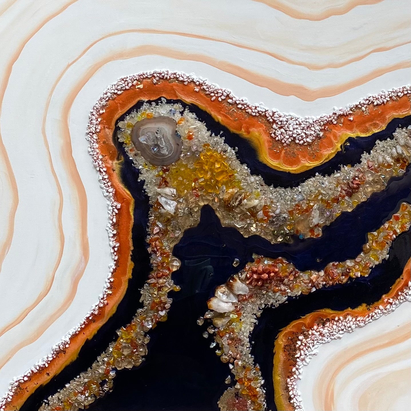 Embrace the tranquility and beauty of nature with Antuanelle's luxurious geode artworks. Each piece features a stunning geode formation, meticulously crafted with a combination of sparkling crystals, genuine freshwater pearls, and acrylics. These one-of-a-kind creations are believed to promote chakra balancing and positive energy flow.