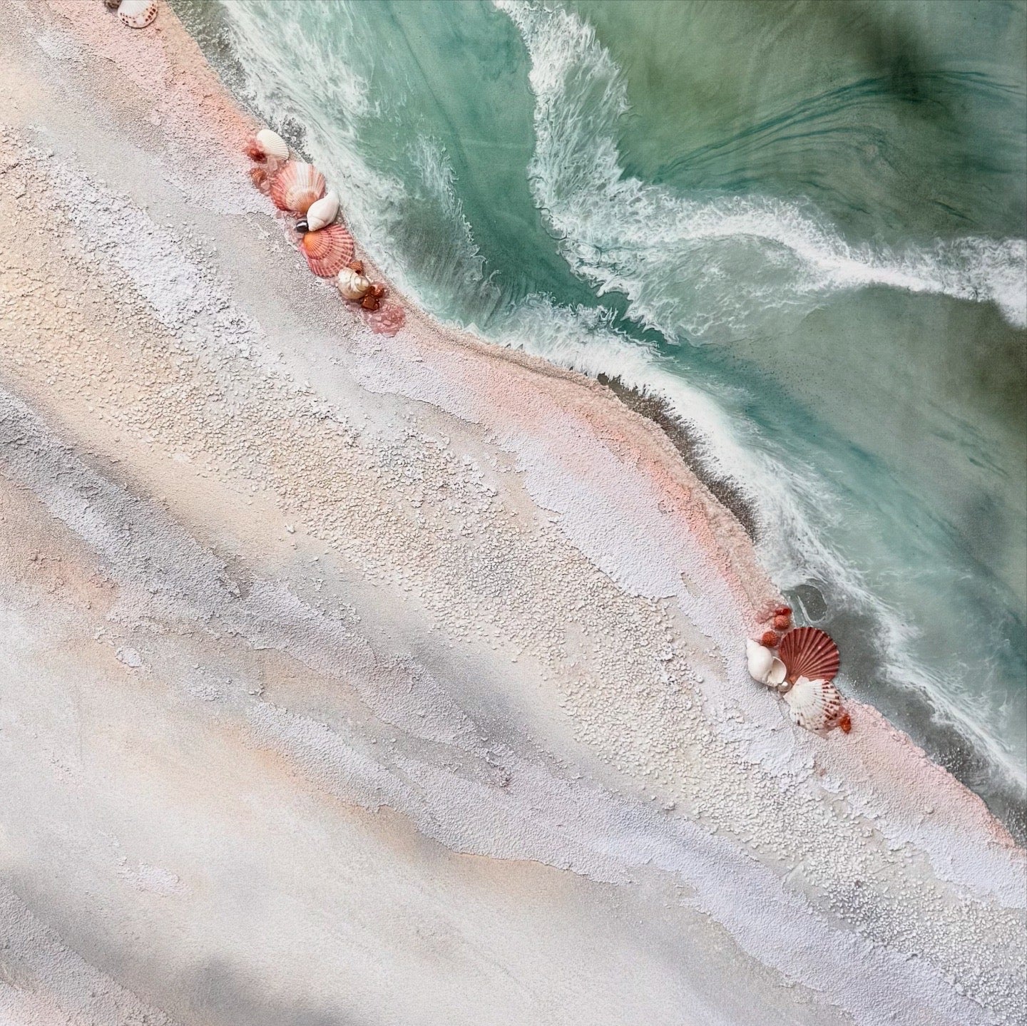 Immerse yourself in the serenity of the Australian coast with Antuanelle's bespoke beach and ocean art. She incorporates genuine sand and seashells sourced from around the world into her creations, allowing you to experience the calming ambiance of the ocean in your own home.