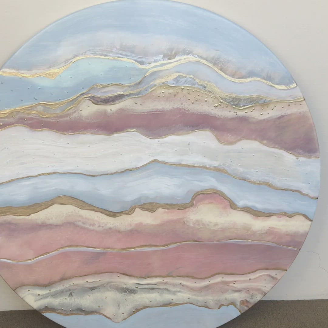 Pink Round Artwork. Blush Sands Pink and Gold Abstract Artwork